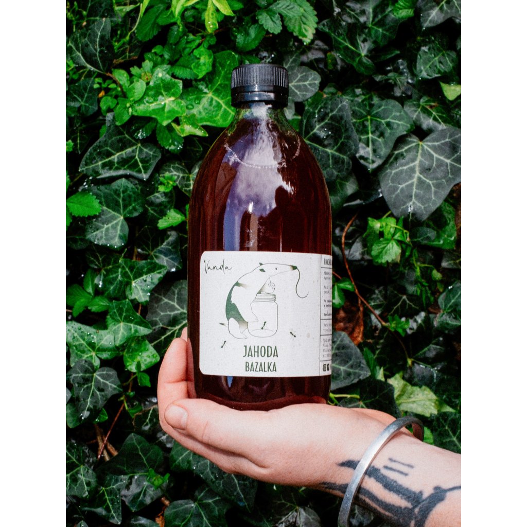 Složení: cukr 39 %, jahoda 19 %, voda, čerstvá bazalka 2 %, antioxidant kyselina citronová.
